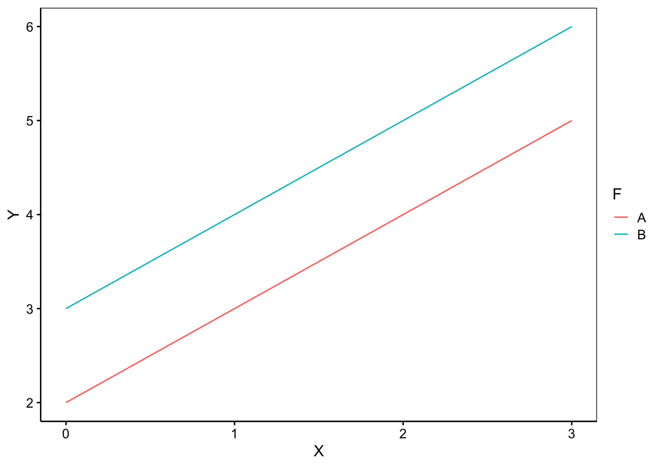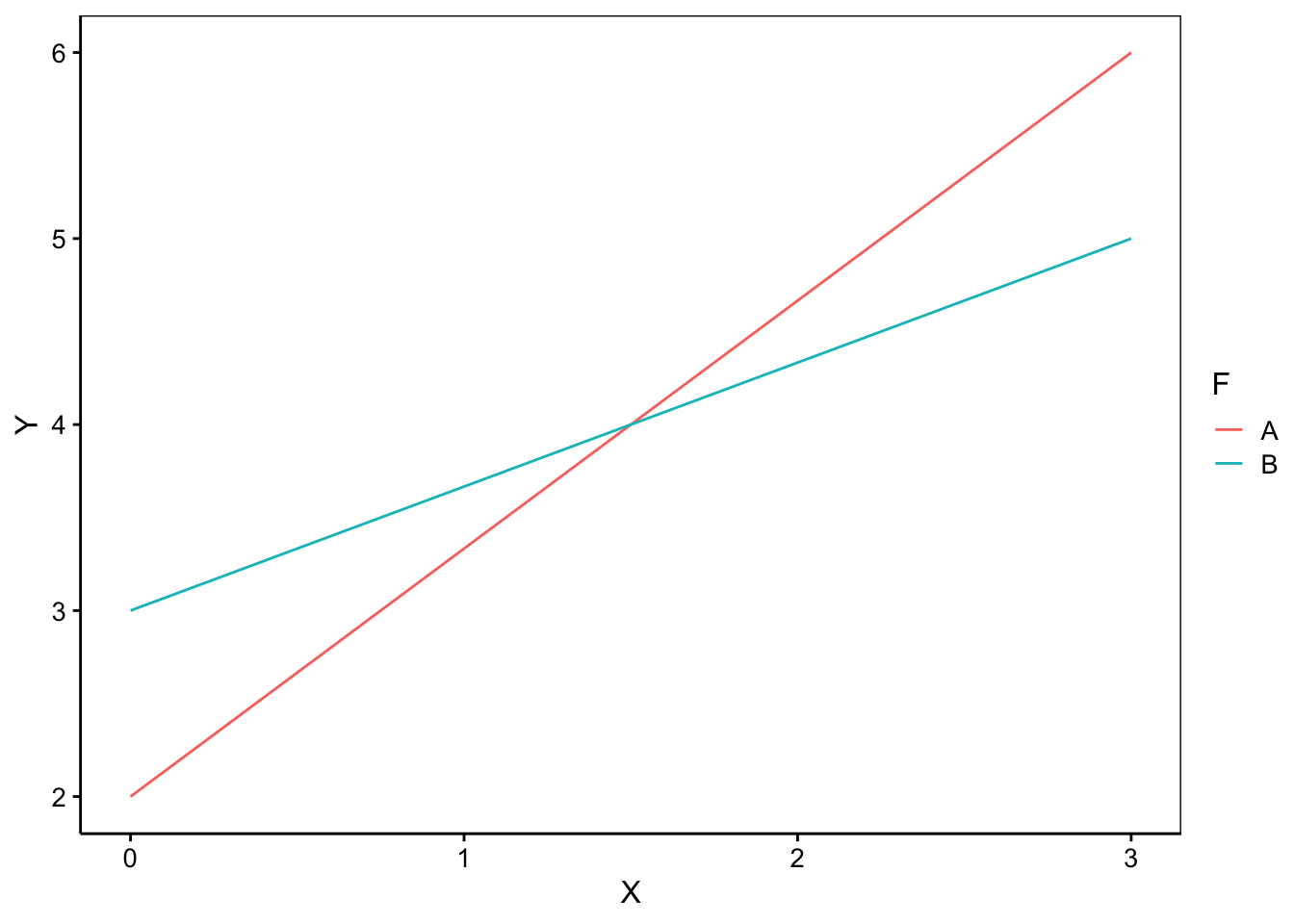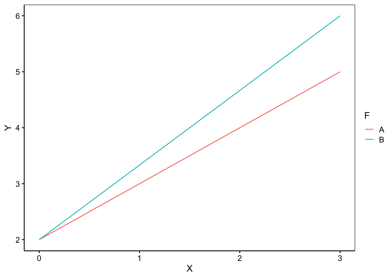 X:Fdans une formule. Nous écrirons donc notre modèle commeY = X + X:F.